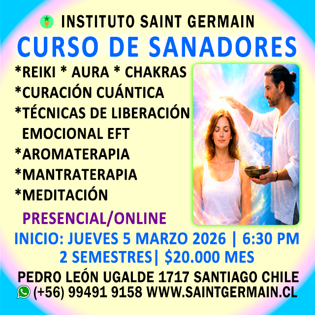 CURSO DE SANADORES | Inicio: Jueves 5 de Marzo 2026 a las 6:30 pm Chile | (+56) 99491 9158 www.saintgermain.cl