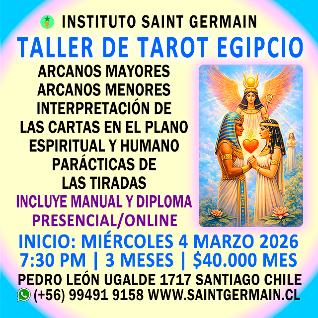 TALLER DE TAROT EGIPCIO | Inicio: Miércoles 4 de Marzo 2026 a las 7:30 pm Chile | (+56) 99491 9158 www.saintgermain.cl