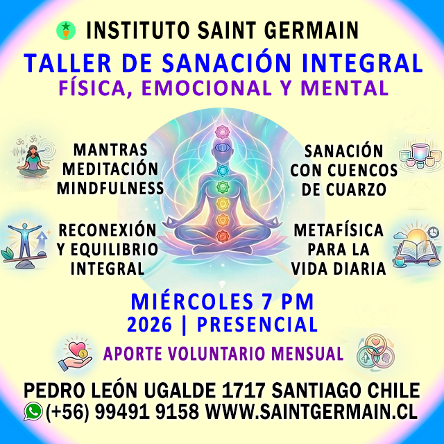 TALLER DE SANACIÓN INTEGRAL | Inicio: Miércoles 4 de Marzo 2026 a las 7 pm Chile | (+56) 99491 9158 www.saintgermain.cl